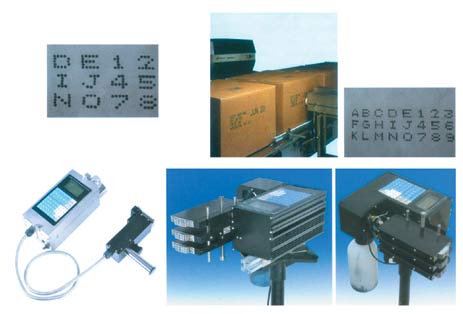 Electric field to deflect ink particle withElectricity principle to print pattern, letterAnd digital on goods face. There are twoType machines with small Character and big Character. It is widely used to print date, batch number, bar code ,trade mark, security logo and Chinese-English letters on plastic bag, paper bag, paper plastic compound bag, PE bag.